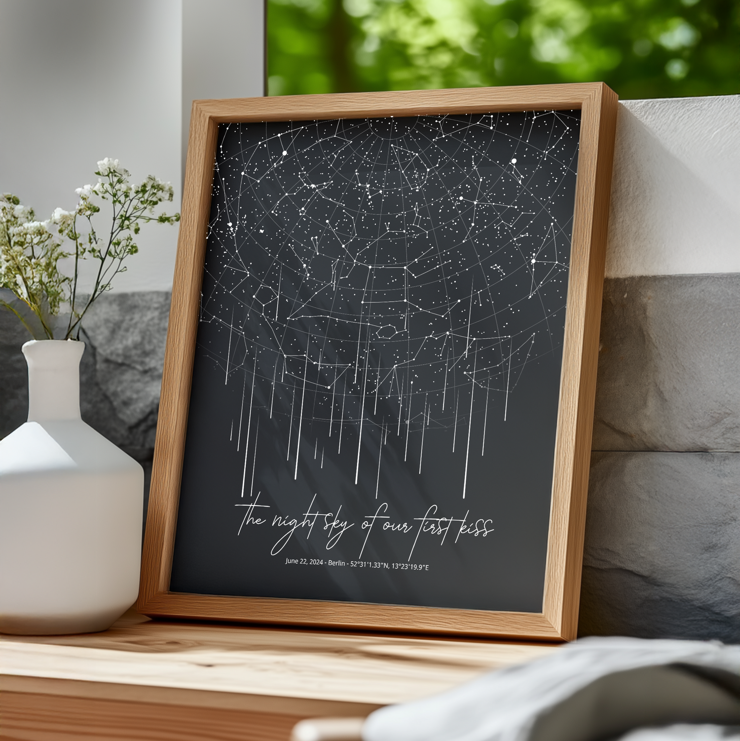 That moment! The one you’ll never forget. Maybe it was filled with laughter, a long hug under the stars, or that life-changing “yes.” Now, you can relive it every day with this exclusive star map design, only available at Momentus.